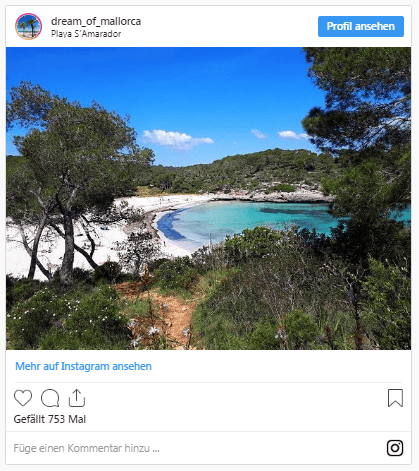 Wer einen Strand inmitten Natur sucht, wird S’ Amarador lieben. Der weiße Sandstrand liegt mitten im Parque Natural Cala Montragó, umgeben von Pinienwäldern und Felswänden. Wie es so oft ist, bleibt ein schöner Ort meist nicht unentdeckt. Durch seine Attraktivität lockt der Strand viele Besucher an.